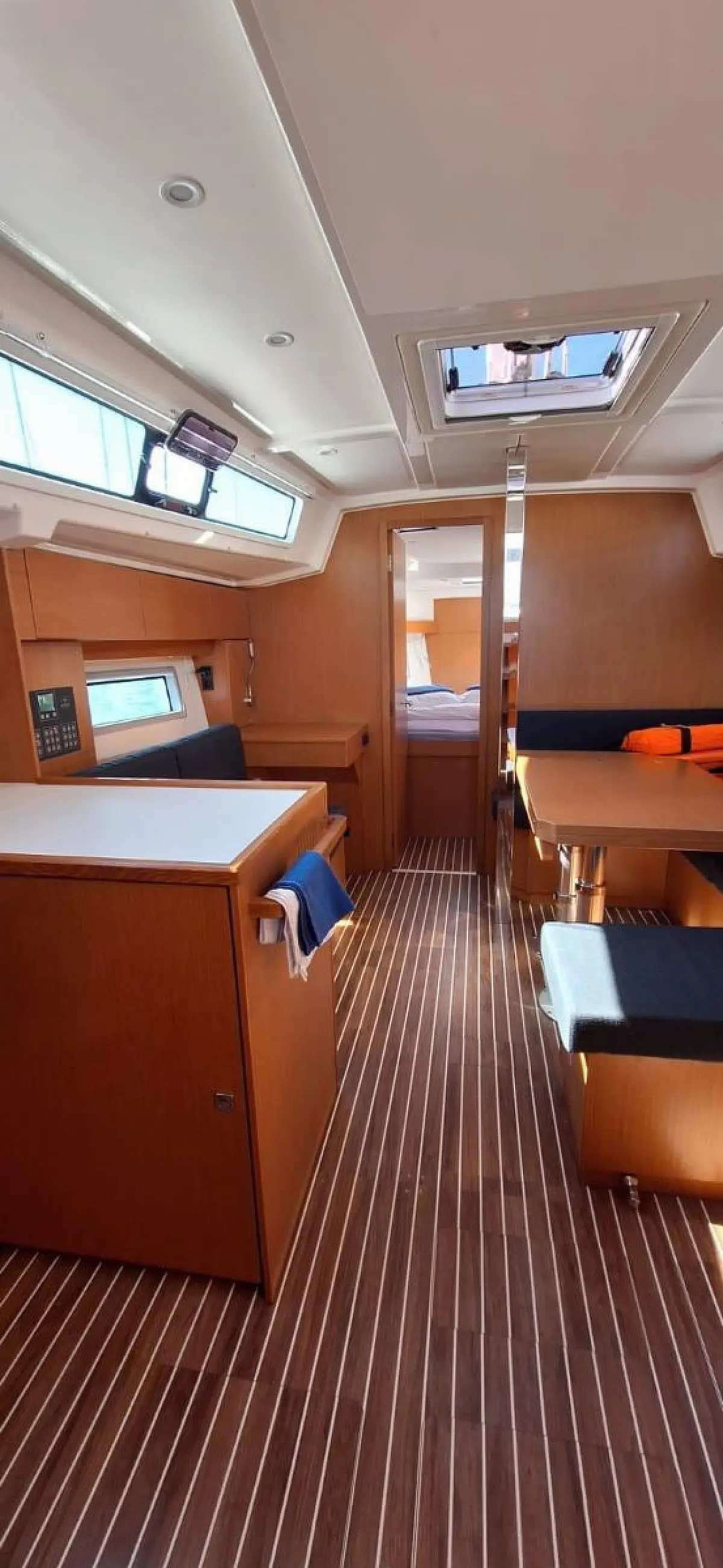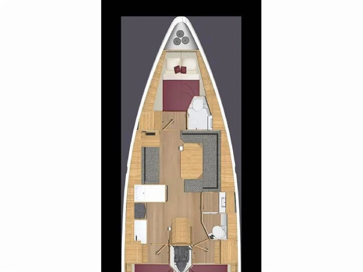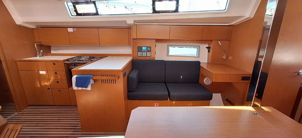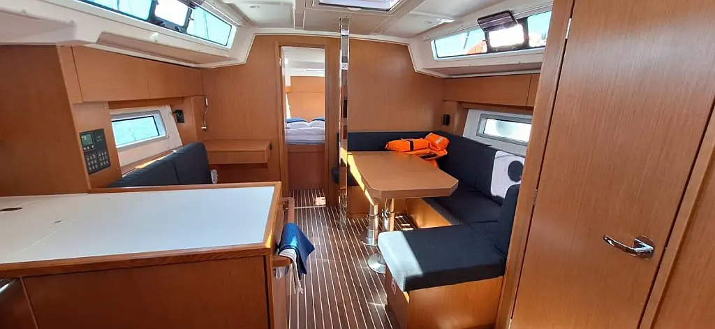 Bathing platform, Bimini top, Electric anchor windlass, Sprayhood, Cockpit table, Cockpit/stern shower, Dinghy