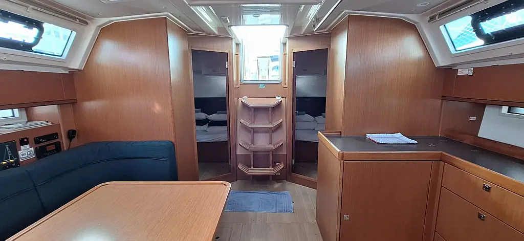 Bow thruster, Compass, Deptsounder, GPS chart plotter - cockpit, Binoculars, Navigation set, Harbour guides, Nautical charts, Nautical guide, Windex, Radar reflector, AIS, Hand bearing compass, Autopilot, Composite steering wheels, Logge/Lot/Speed/Wind-tridata