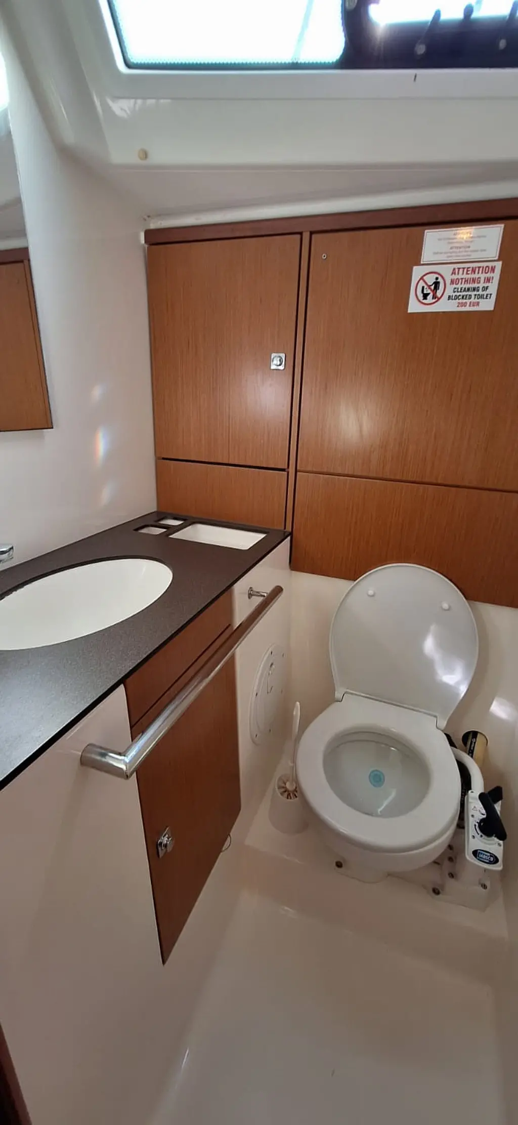 Bilge pump handle, Convertible from 4 into 3 cabins, Cabin cushions/pillows, Bed linen per person, Duvet + cover, Toilet, Shower