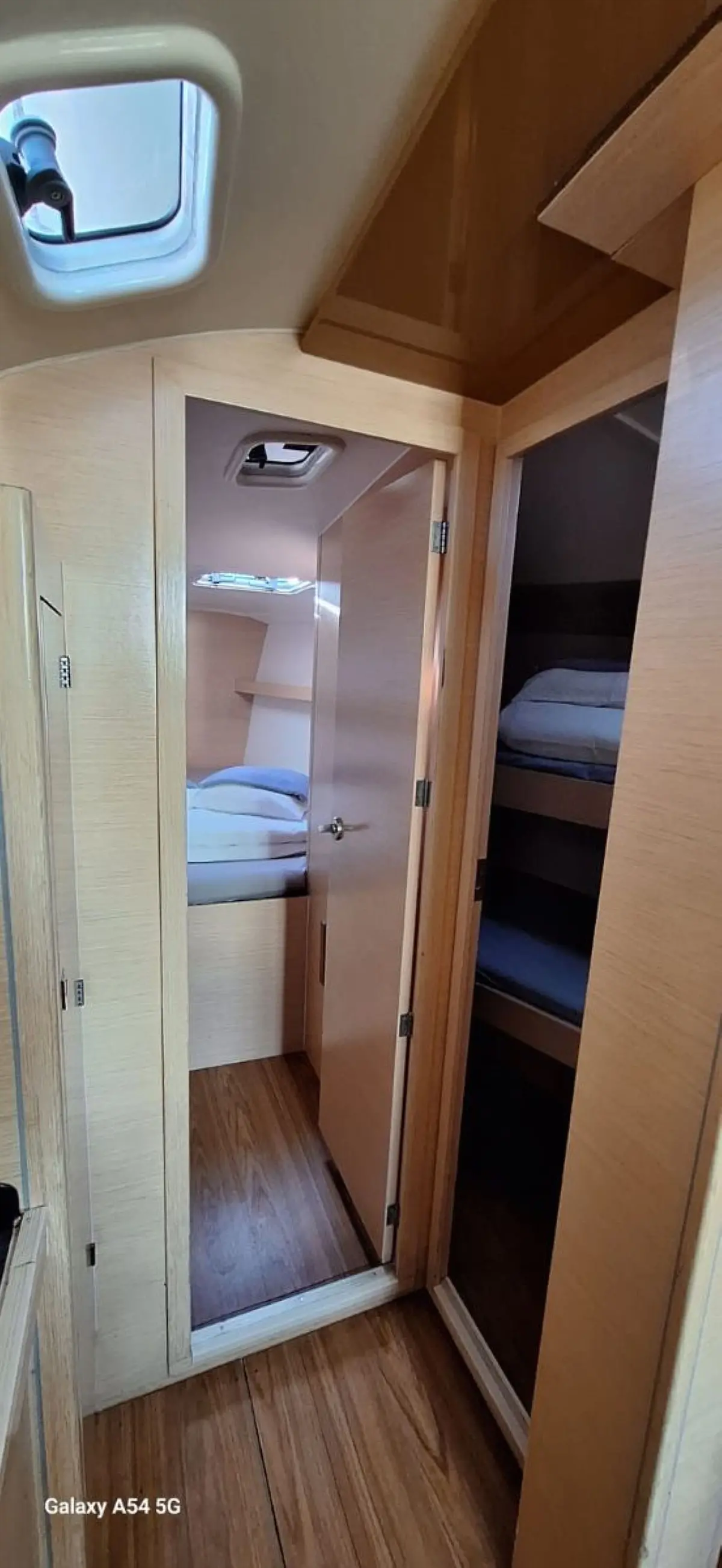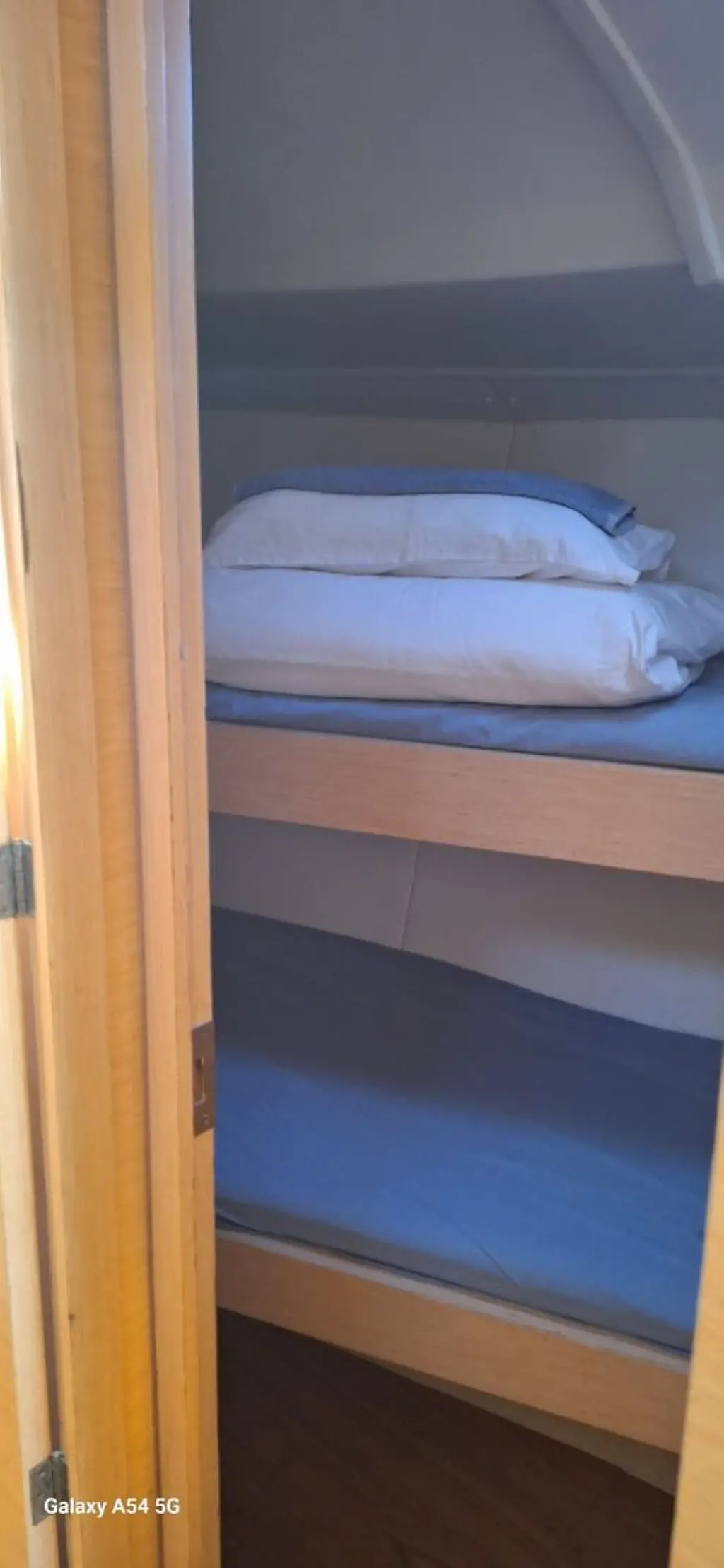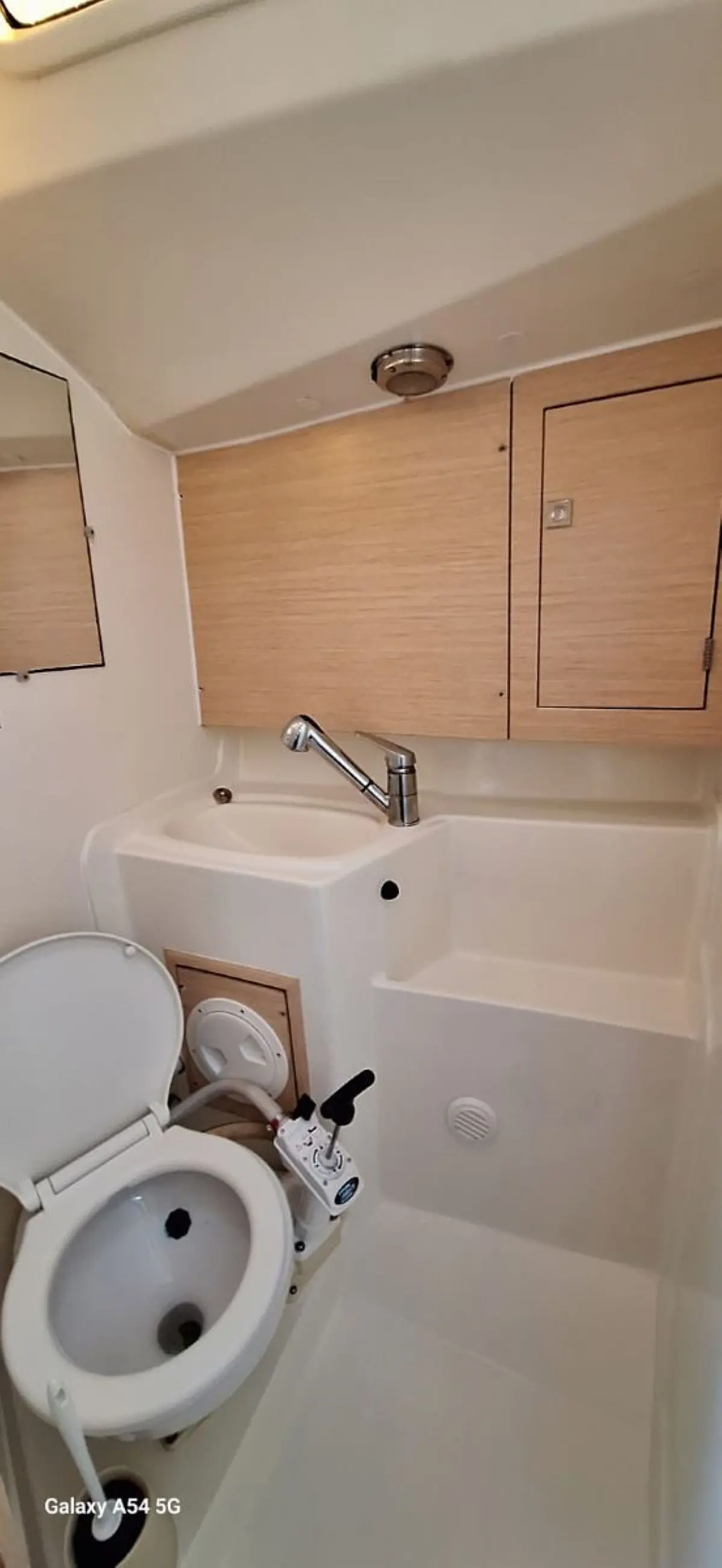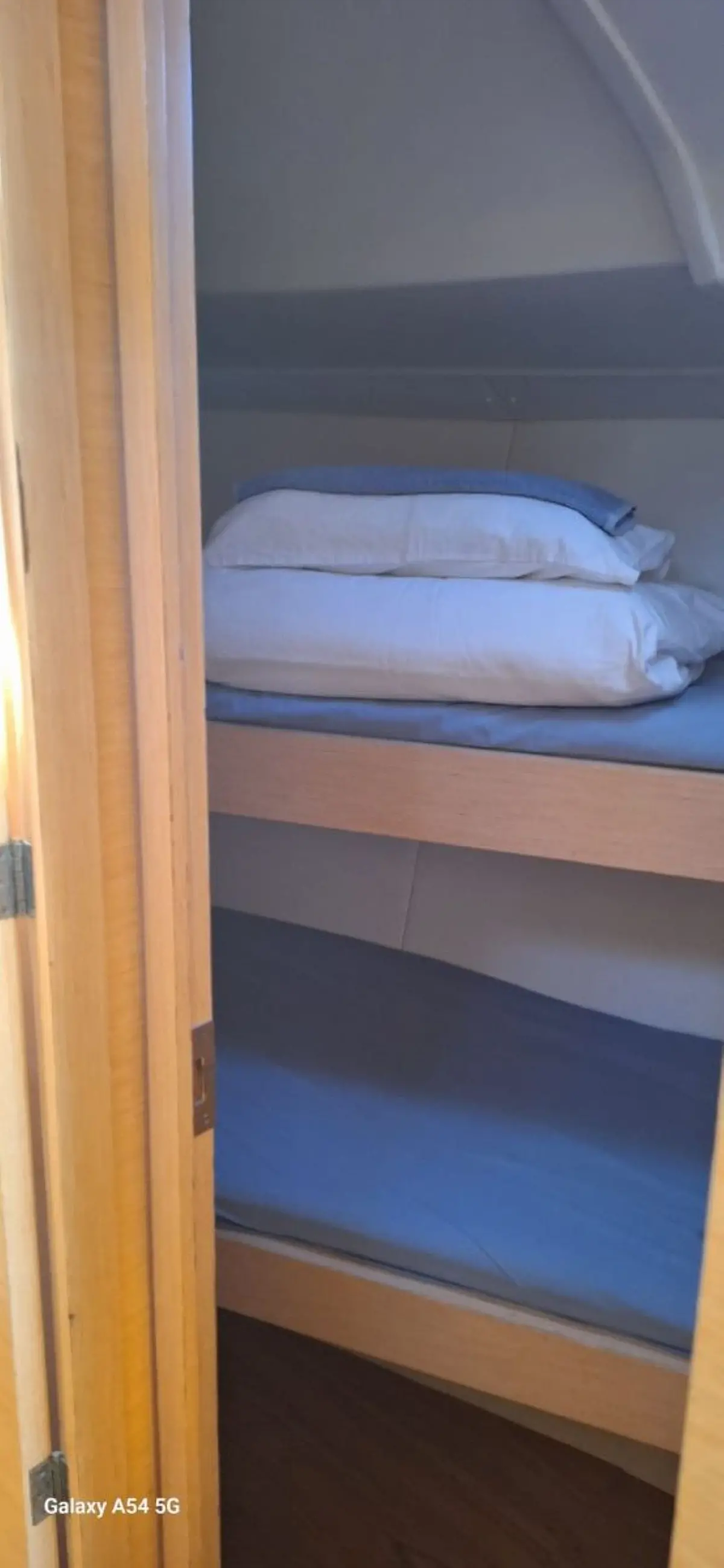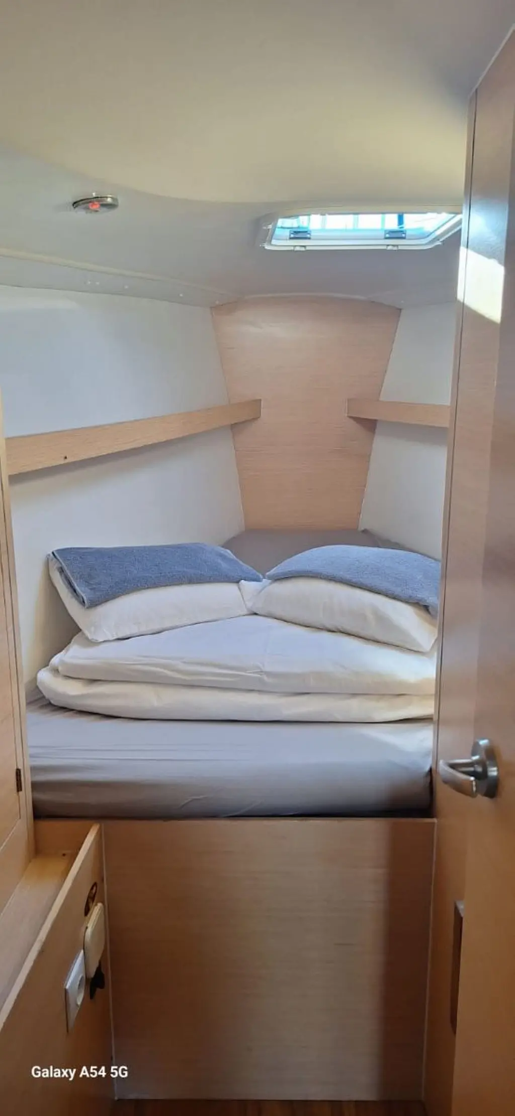 Bilge pump handle, Cabin cushions/pillows, Bed linen per person, Duvet + cover, Toilet, Shower