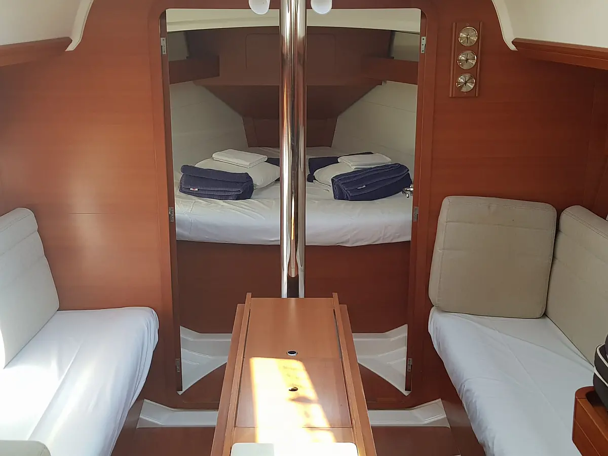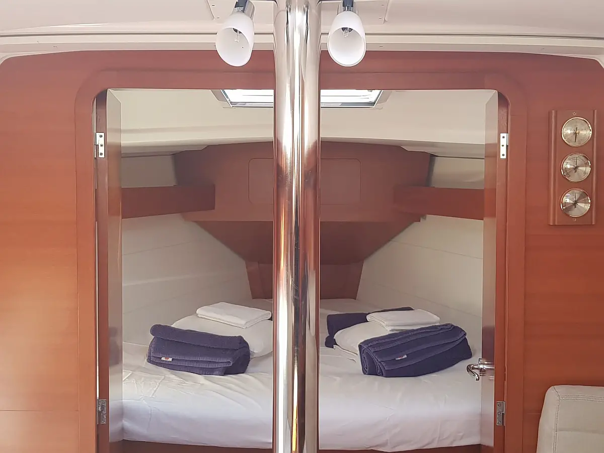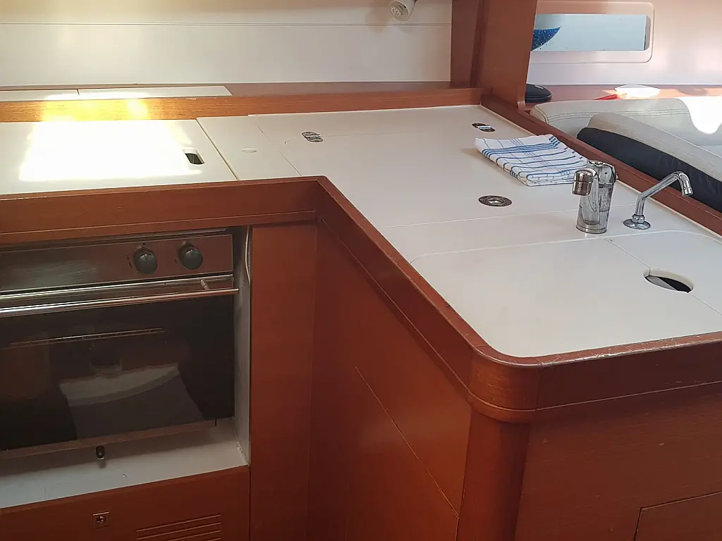 Bathing platform, Bimini top, Electric anchor windlass, Sprayhood, Cockpit table, Cockpit/stern shower, Swimming ladder