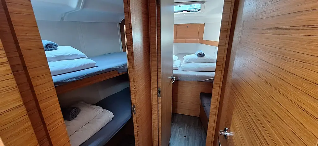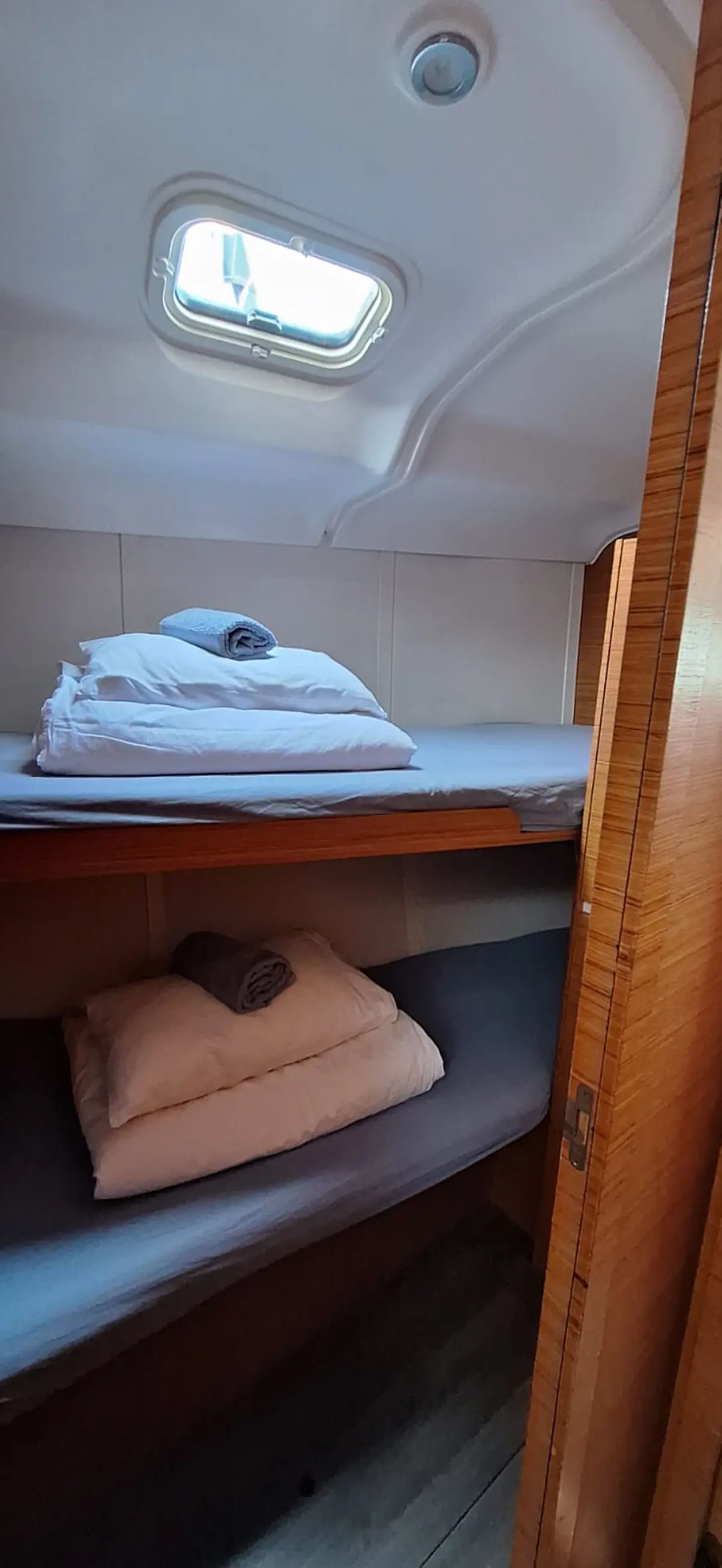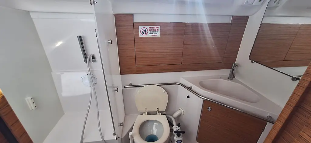 Bilge pump handle, Cabin cushions/pillows, Bed linen per person, Duvet + cover, Toilet, Shower