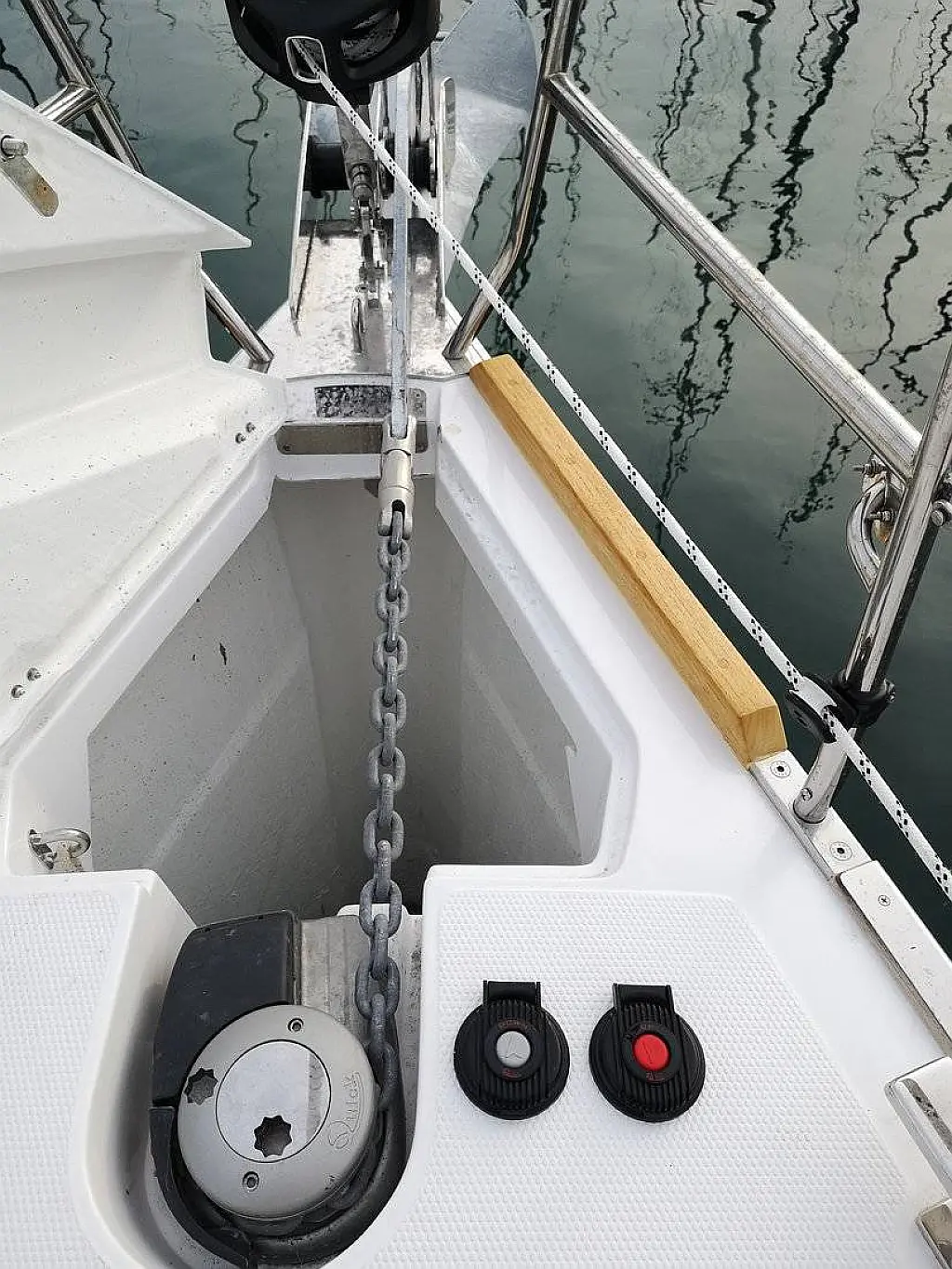 Bimini top, Electric anchor windlass, Sprayhood, Cockpit table, Cockpit/stern shower, Dinghy