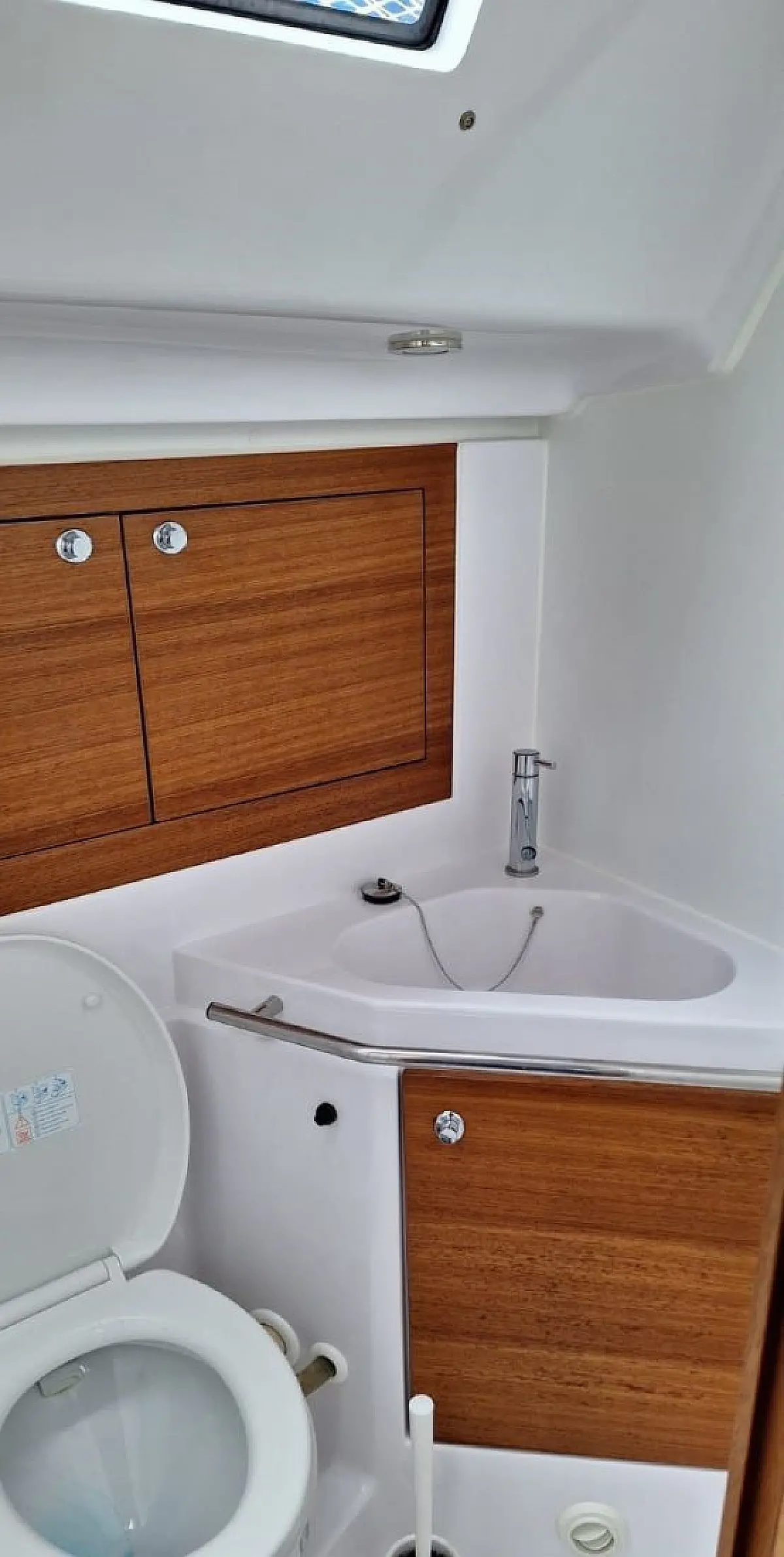 Bimini top, Electric anchor windlass, Sprayhood, Cockpit table, Cockpit/stern shower, Dinghy