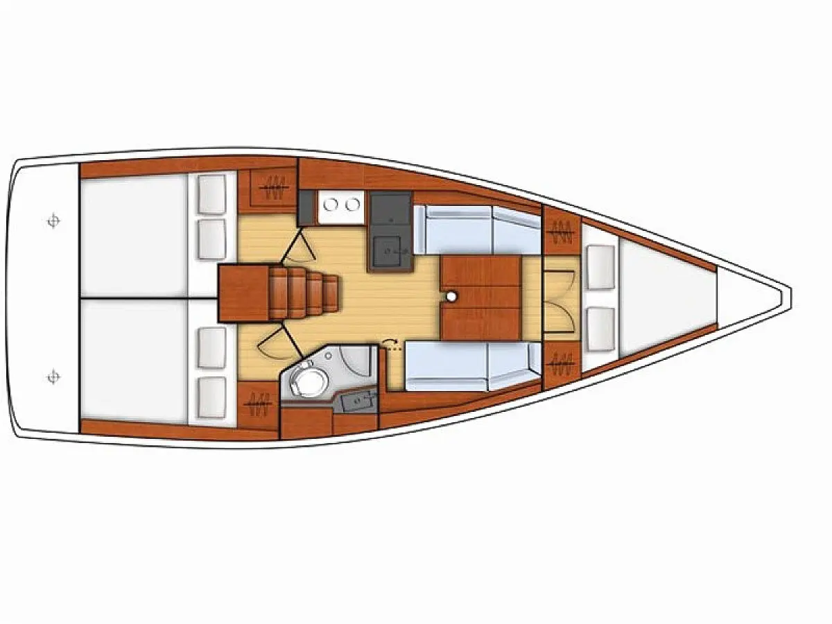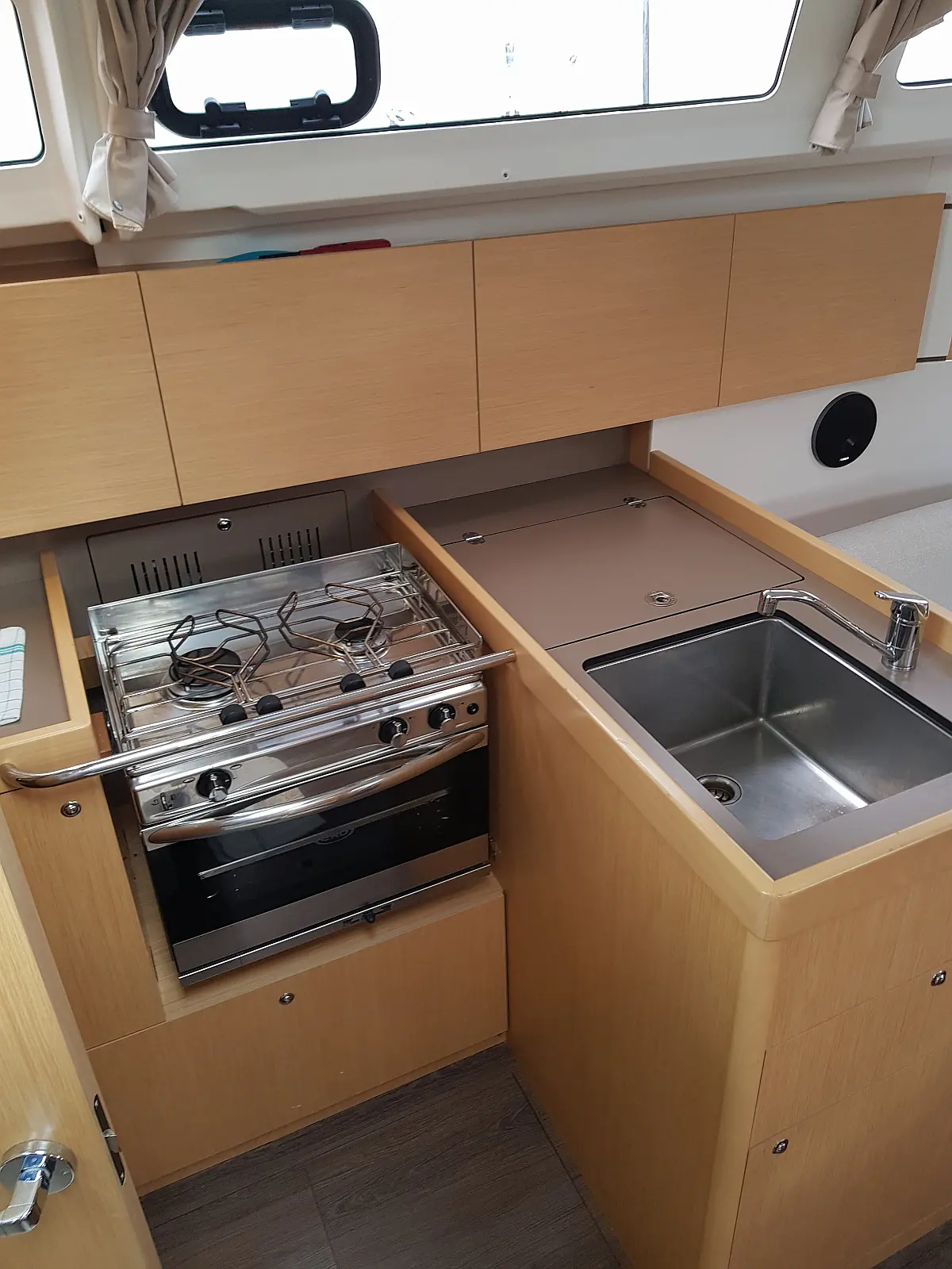 Bimini top, Electric anchor windlass, Sprayhood, Cockpit table, Cockpit/stern shower, Dinghy