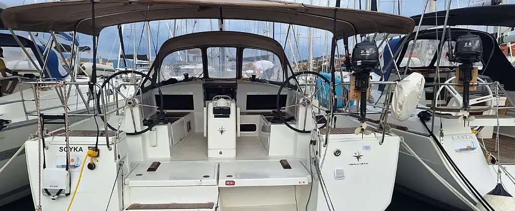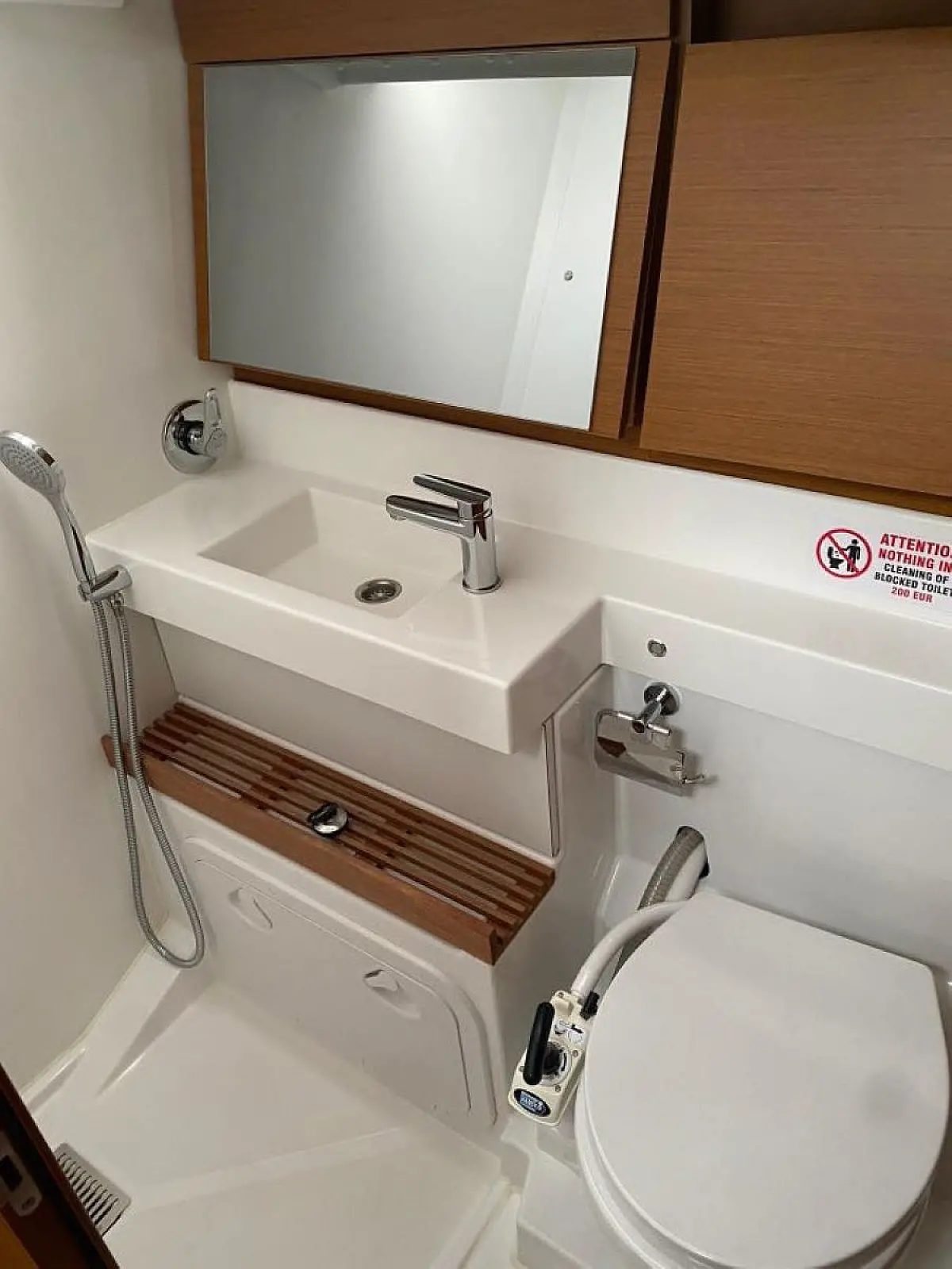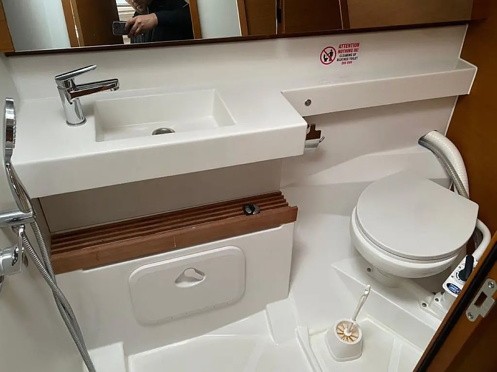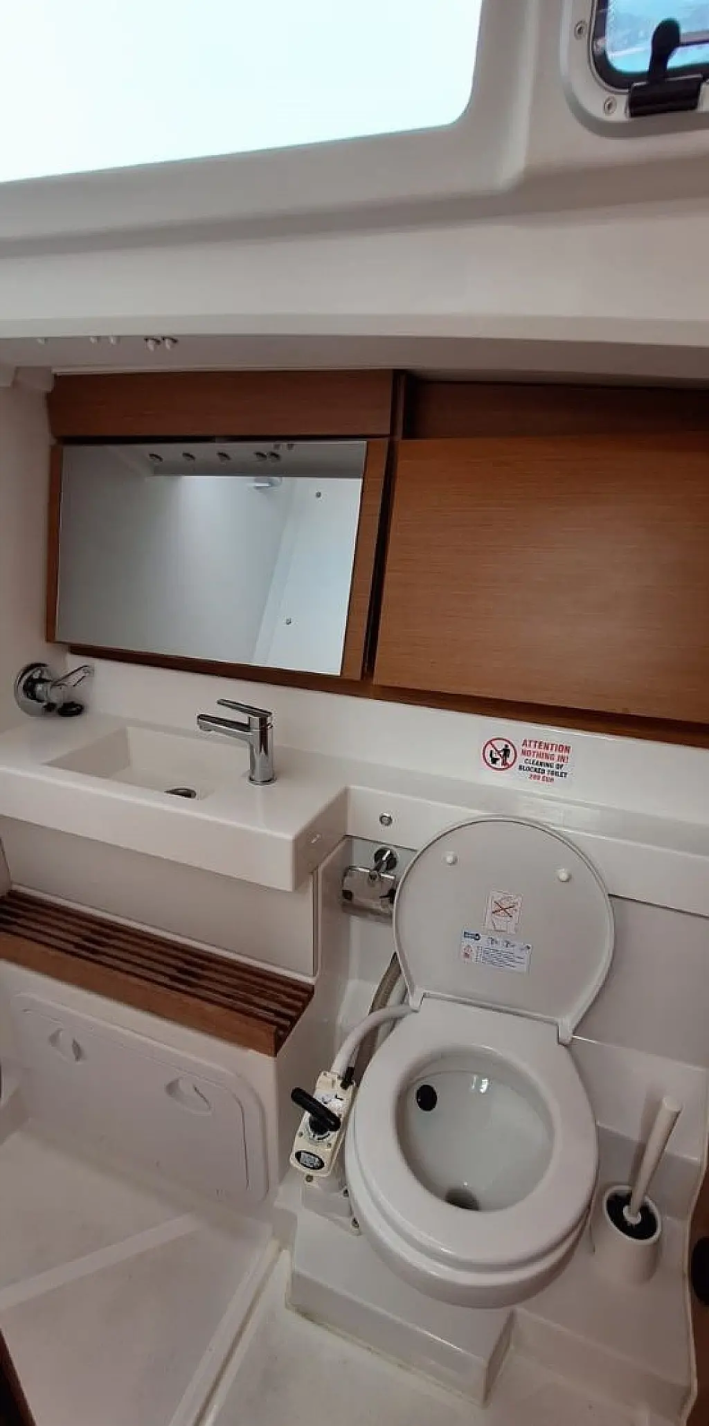 Bimini top, Electric anchor windlass, Sprayhood, Cockpit table, Cockpit/stern shower, Dinghy
