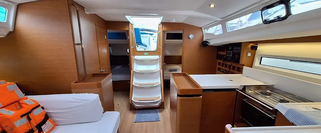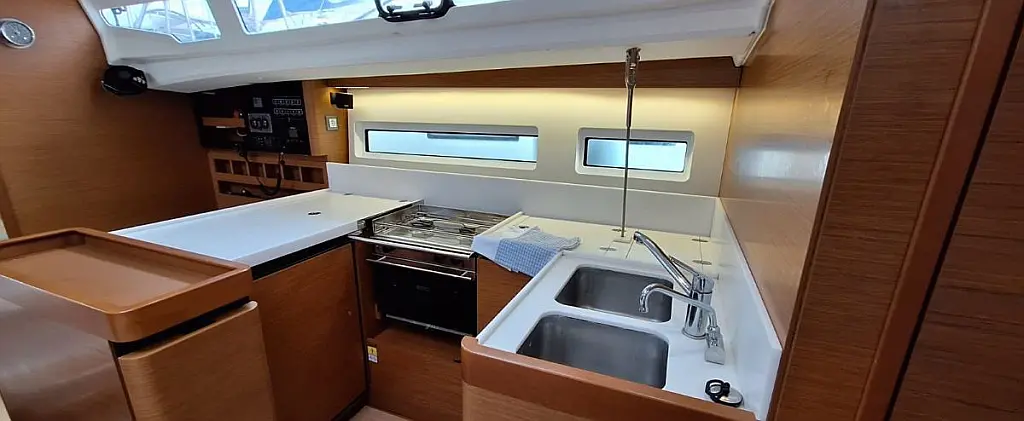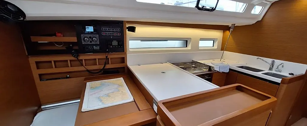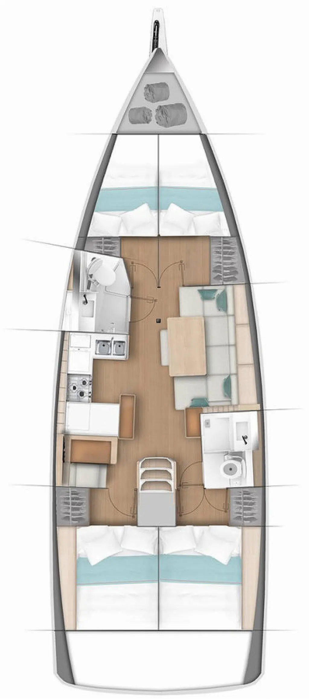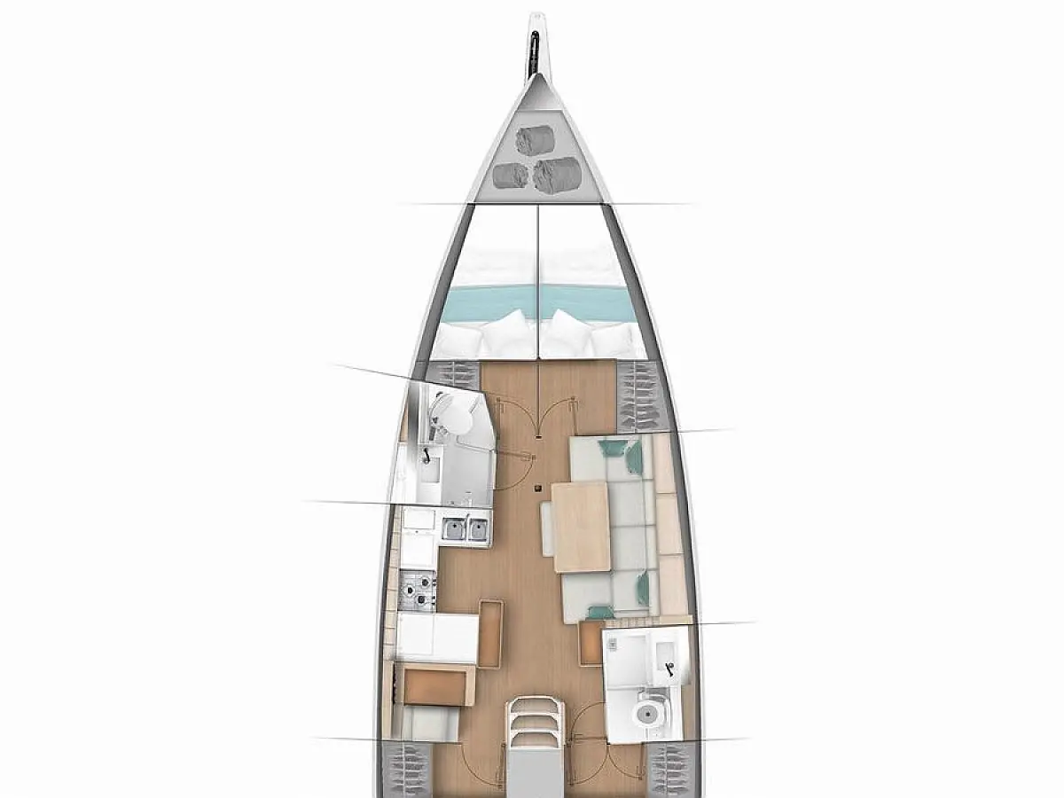 Bimini top, Electric anchor windlass, Sprayhood, Cockpit table, Cockpit/stern shower, Dinghy