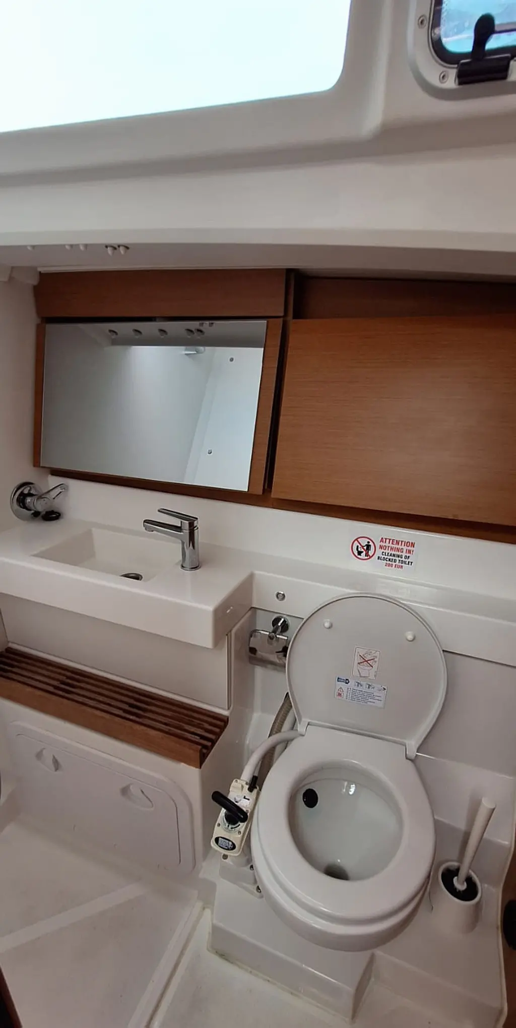 Bilge pump handle, Convertible from 4 into 3 cabins, Cabin cushions/pillows, Bed linen per person, Duvet + cover, Toilet, Shower
